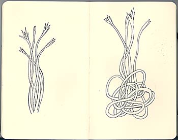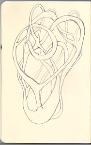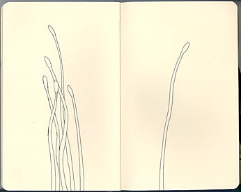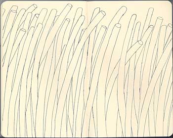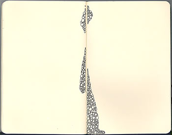 Despite having plans to post drawings from my sketchbook at regular intervals, I have actually been fairly lazy. Yesterday, however, I went out and bought a new sketchbook. It is smaller than my other ones which means that I am more apt to carry it around with me – and more likely to have it at work where I do my scanning. I remember seeing a friend’s sketchbook and being impressed by it – both by his commitement to it and how nice it looked.