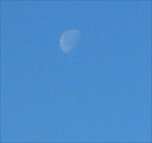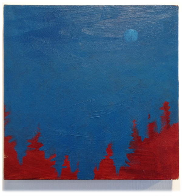 A moon over red, a small painting, oil on board, 10 x 10 inches, 2011