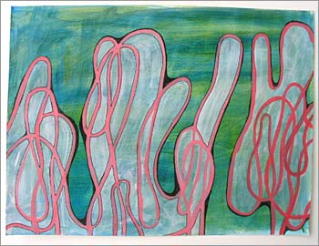 untitled so far, acrylic on paper, 30 x 40 inches, 2009.