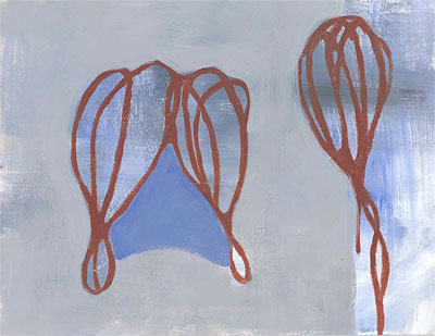 I have been making a lot of new drawings while working at the studio lately. Soon, I think, I will start making large paintings. Yesterday I made a few smallish paintings based on the sketch above. I am still unsure about them. Are they dynamic enough? Too graphic in a design sense? I am happy, however, that I have started to work fast again. There are times when I get overly finicky with the works and would be better off getting things done faster – just getting them out.