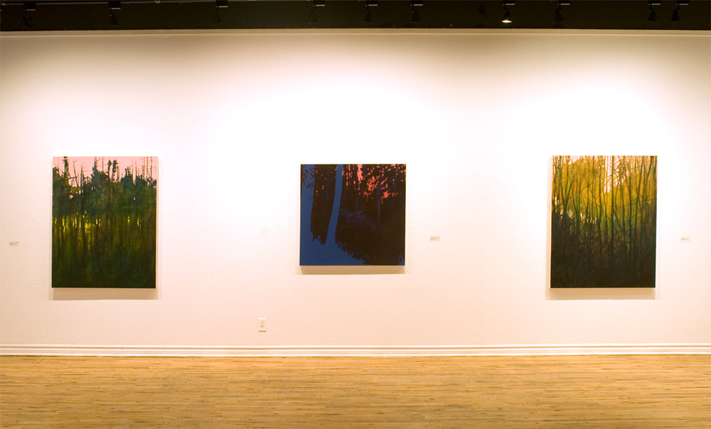 In preparation for the exhibition, Dixon, Ronc and Worsnip met regularly to exchange ideas, report on their works in progress and to engage in and provoke a more profound reflection on an art practice that focuses on a theme as ancient as painting itself. The artists have sought in their works to evoke more than to represent, to question the illusory nature of pictorial space as well as to permit the co-existence of several visual languages. They also sought to bring particular attention to the tactile aspect of paint and colour as expressions of the link between landscape and the inner life of the psyche.